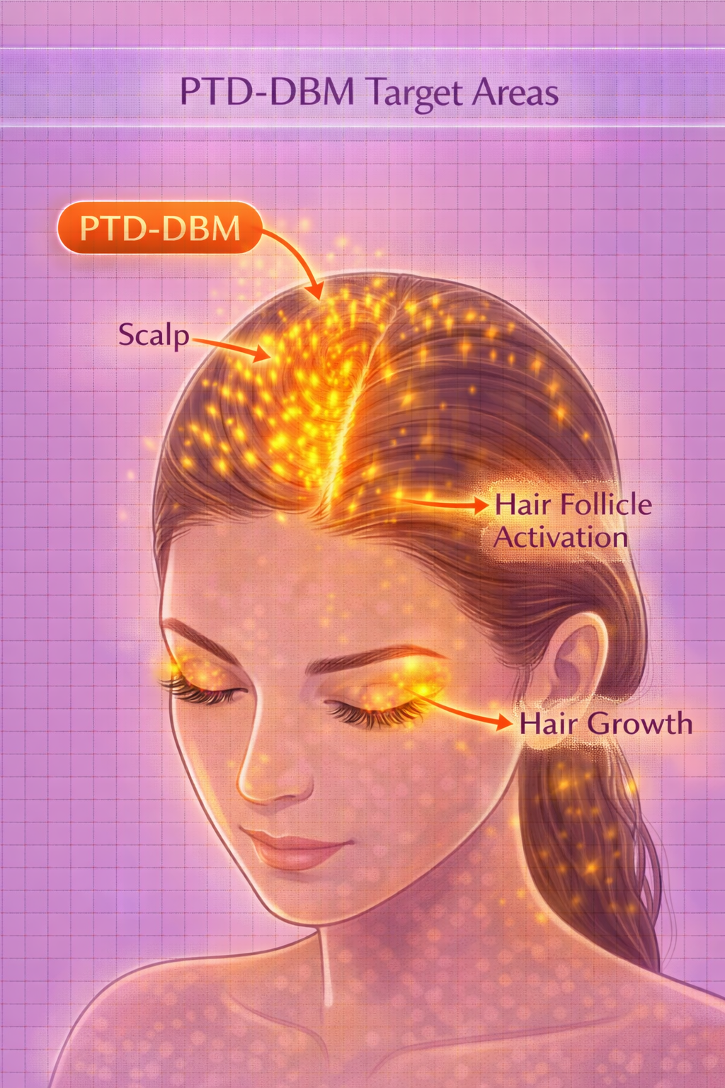 PTD-DBM is a cell-penetrating peptide that inhibits CXXC5 — a protein that suppresses the Wnt/β-catenin pathway. By "blocking the blocker," PTD-DBM reactivates Wnt signaling in hair follicles, promoting the anagen (growth) phase.